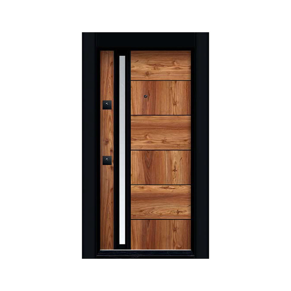 Contemporary Luxury Wooden Door With Stylish Geometric Panels For Modern Home Entrance