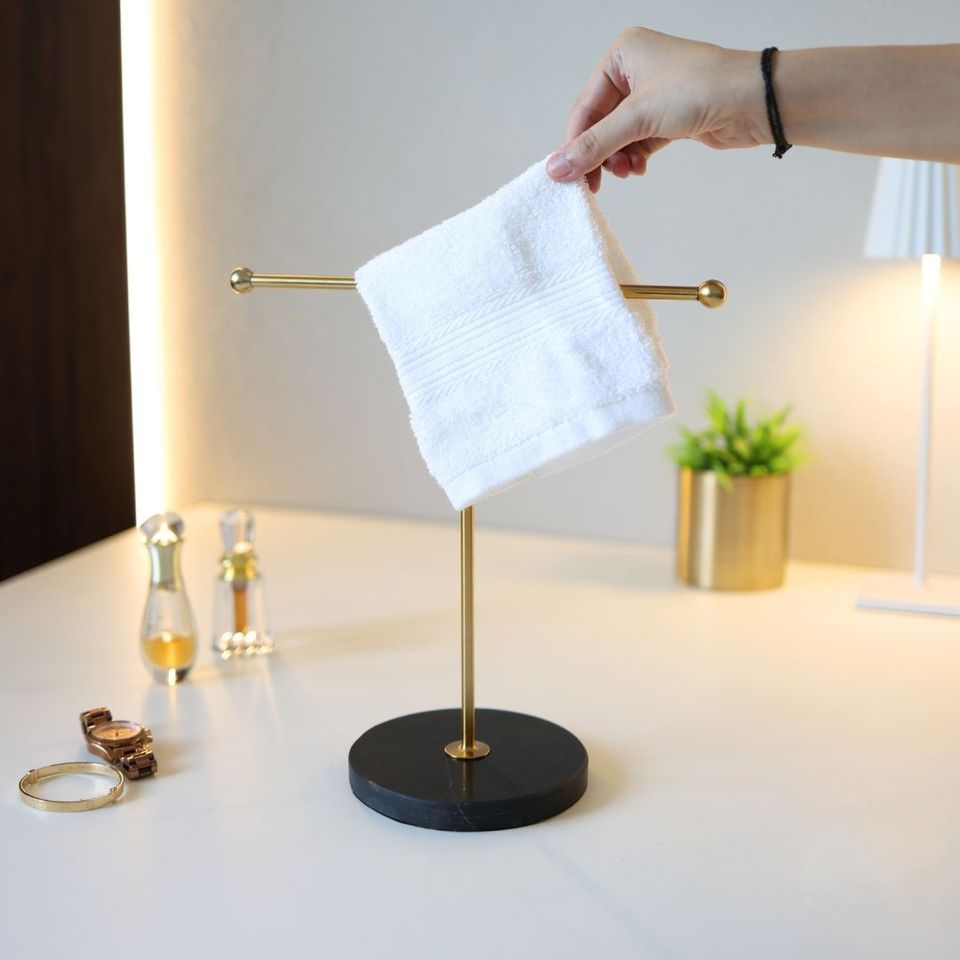 Contemporary Marble Metal Rotating Towel Stand Freestanding Bathroom Organizer Rack Traditional for Clothing Stylish Decor