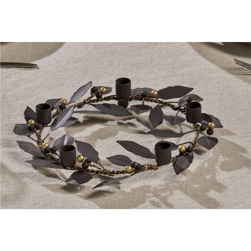 Contemporary Matte Black Round Candle Tray 4Slot Iron Pillar Holder Elegant Coffee Table Decorative Tray Minimalist Candle Stand