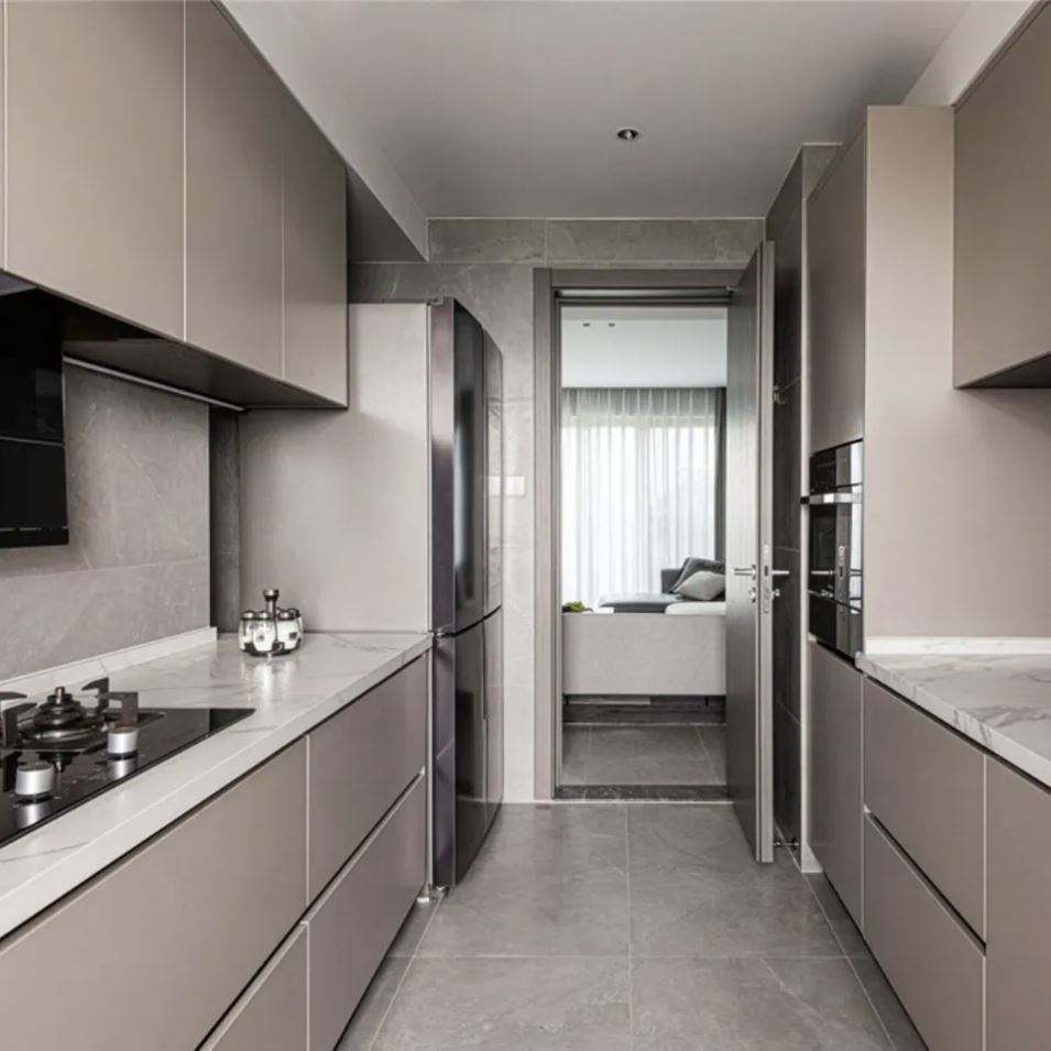 Contemporary Medium Sized Customized Kitchen Complete Set Concealed Handle Lacquer Finish Plywood Kitchen Cabinet