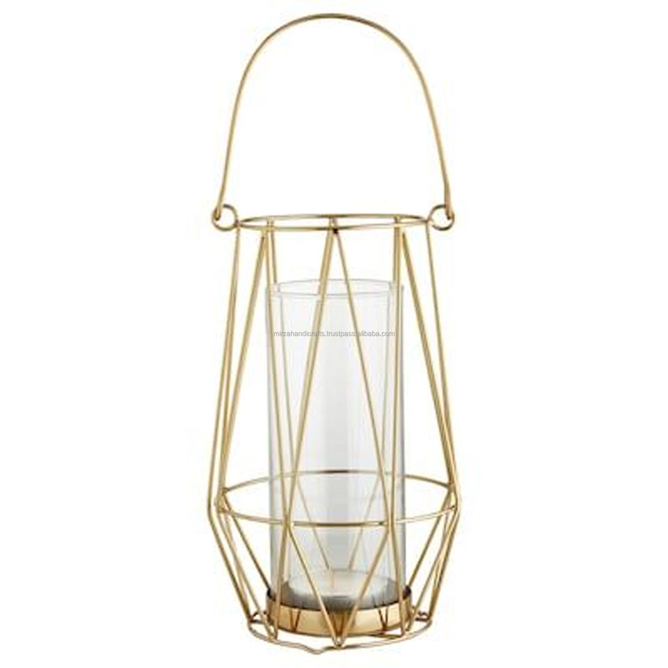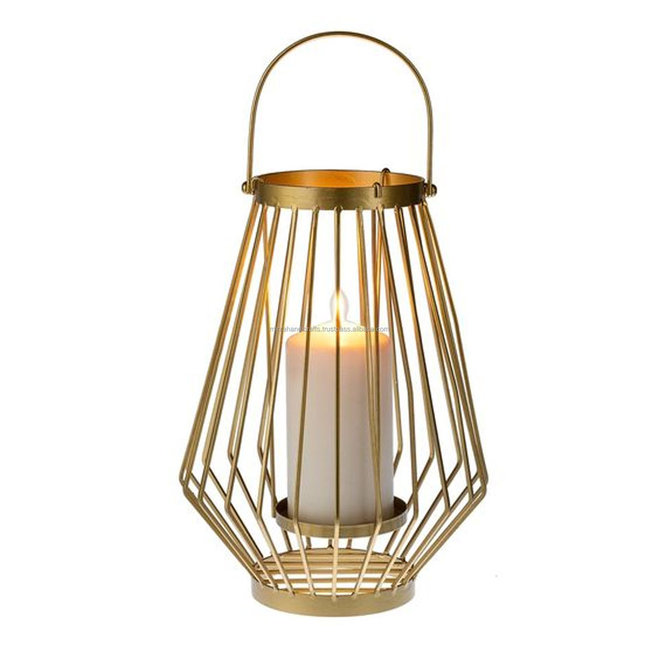 Contemporary Metal Cages Candle Holder in Gold Finished Handmade for Indoor Outdoor Events Parities Modern Style