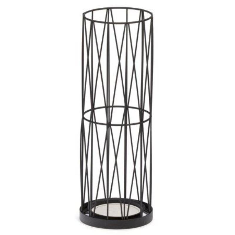 Contemporary Metal Umbrella Stand Geometric Cutout Design Removable Drip Tray Stable Base Stylish Hallway Accent Piece