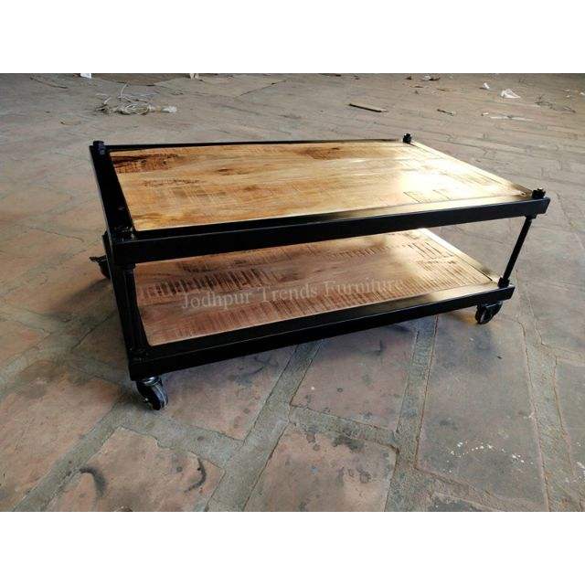Contemporary Modern Coffee Table Wheels Classic Iron Solid Wood for Cafe Restaurant Home New Contemporary Furniture for Home