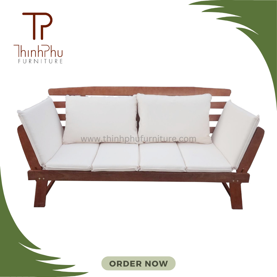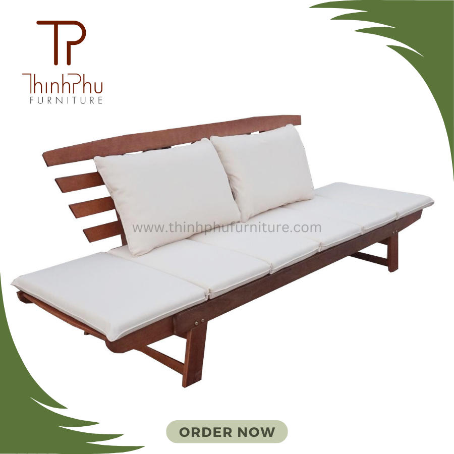 Contemporary Modern Solid Wood Daybed for Outdoor Garden Use Handmade by Vietnamese Manufacturer for Villas and Courtyards