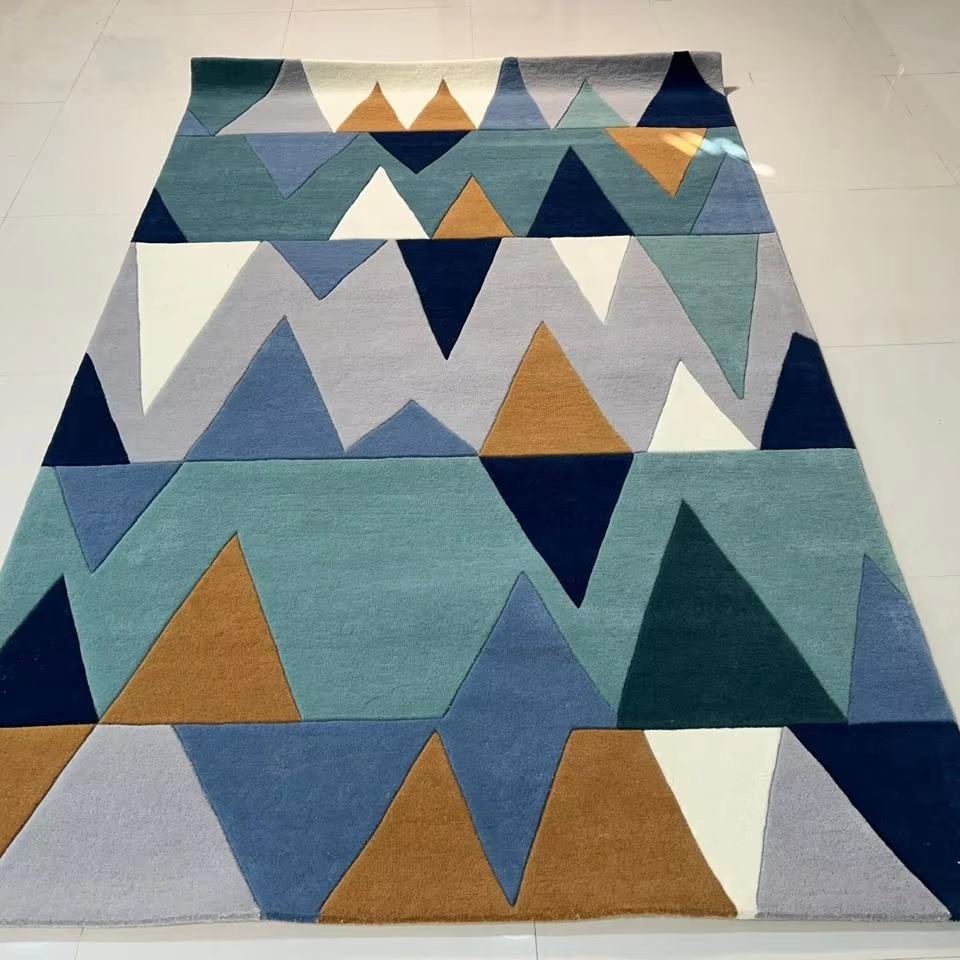 Contemporary Multi-Color Triangle Design Cotton Floor Mat Abstract Nordic Style Living Room Rug