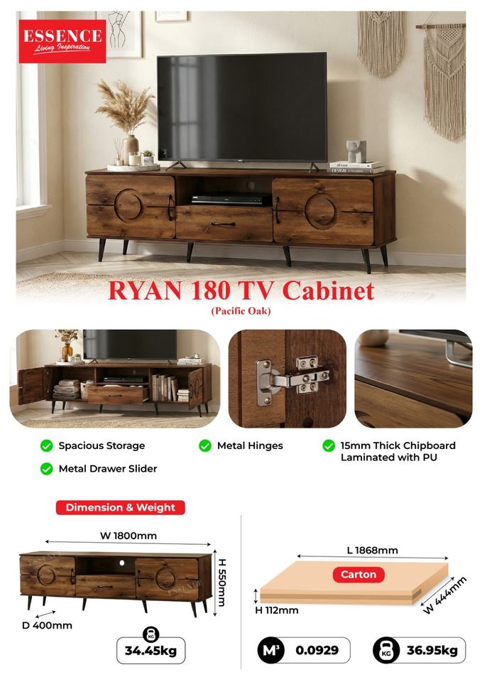 model number:Ryan 180 TV Cabinet (Pacific Oak)