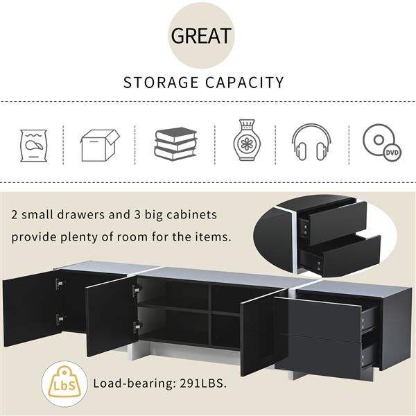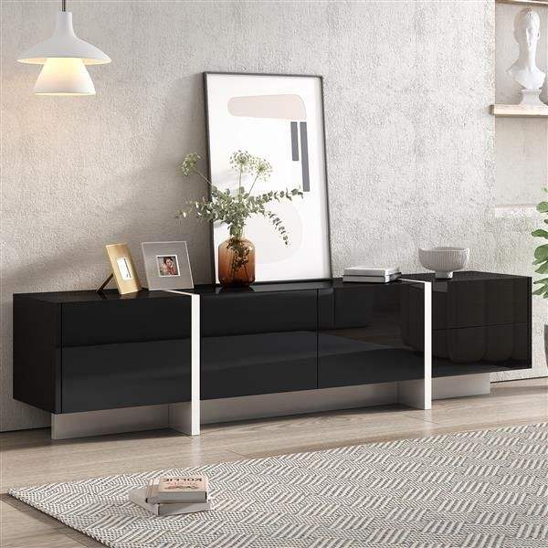 Contemporary Rectangle Design TV Stand White Black Unique Modern TV Cabinet for TVs up to 80 Inches Stylish TV Console Table