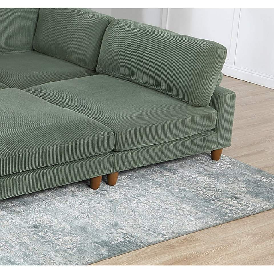 Contemporary Sage 6pc Corduroy Upholstery Modular Sectional Set 2x Corner Wedge 3x Armless Chairs 1x Ottoman Living Room Couch