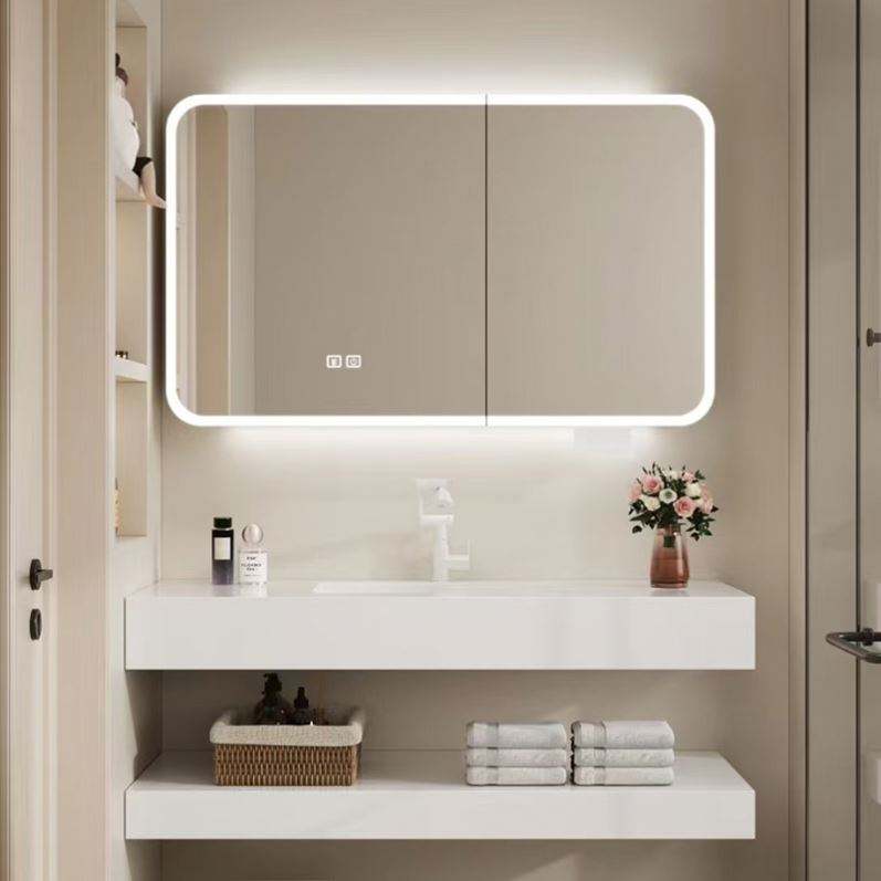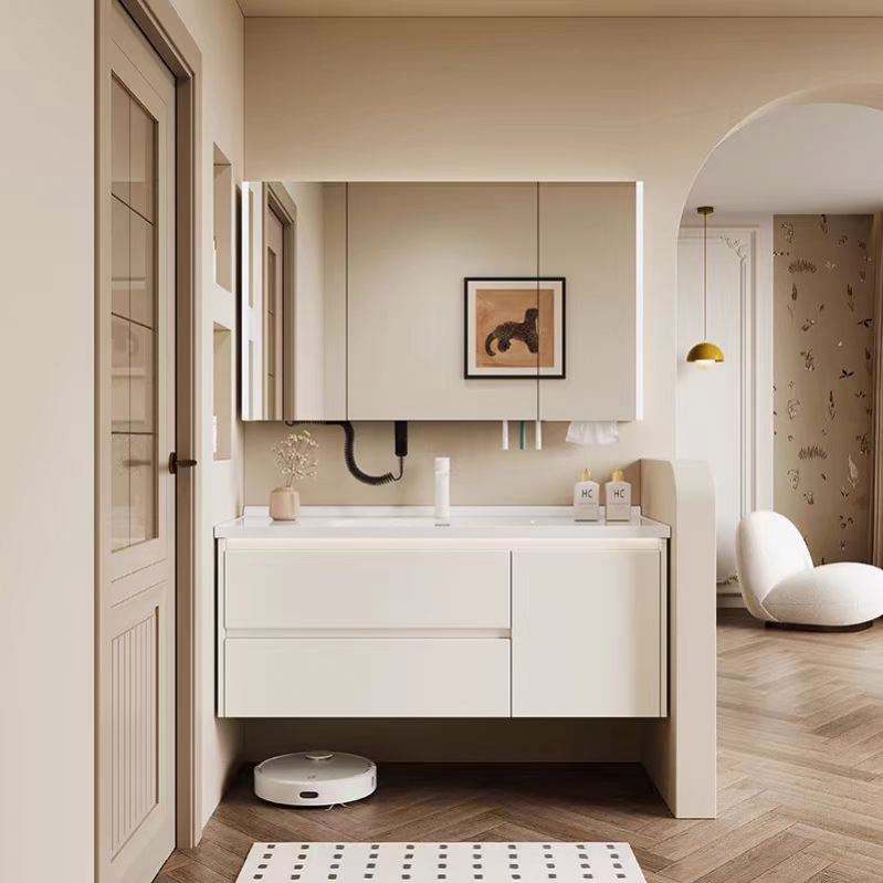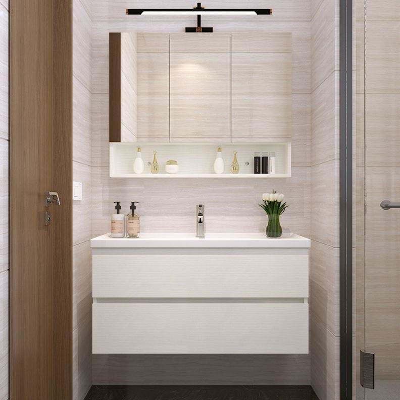 Contemporary Simplicity Style Pure White Series Advanced Feeling Wall Mounted Bathroom Vanity with Sink