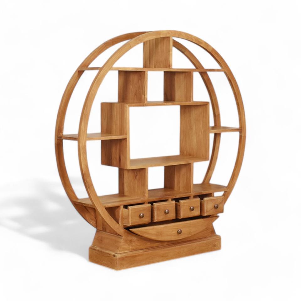 Contemporary Solid Teak Wood Circular Bookcase Display