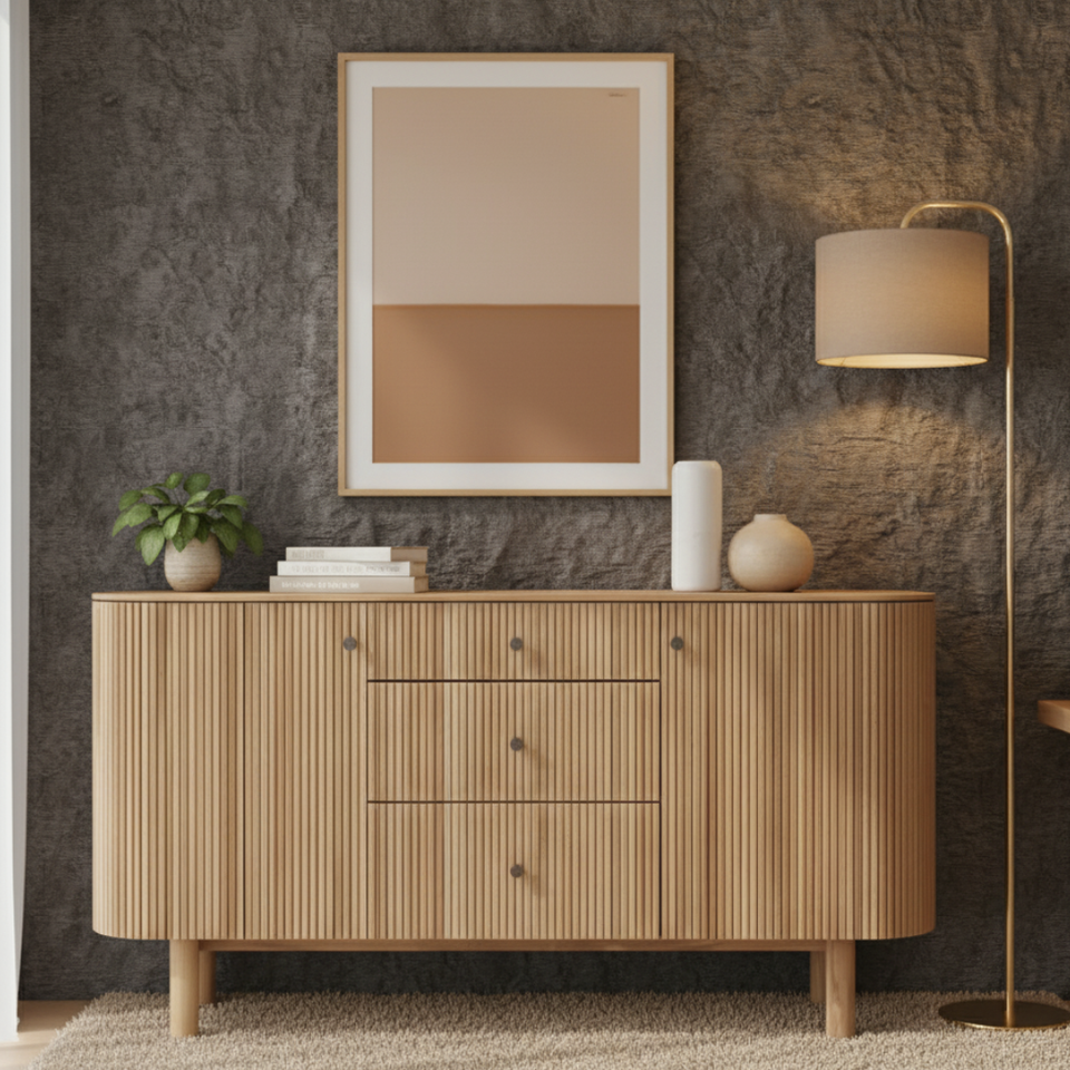 Contemporary Solid Teak Wood Modern European Sideboard Cabinet with Customized Finish for Living Room Furniture