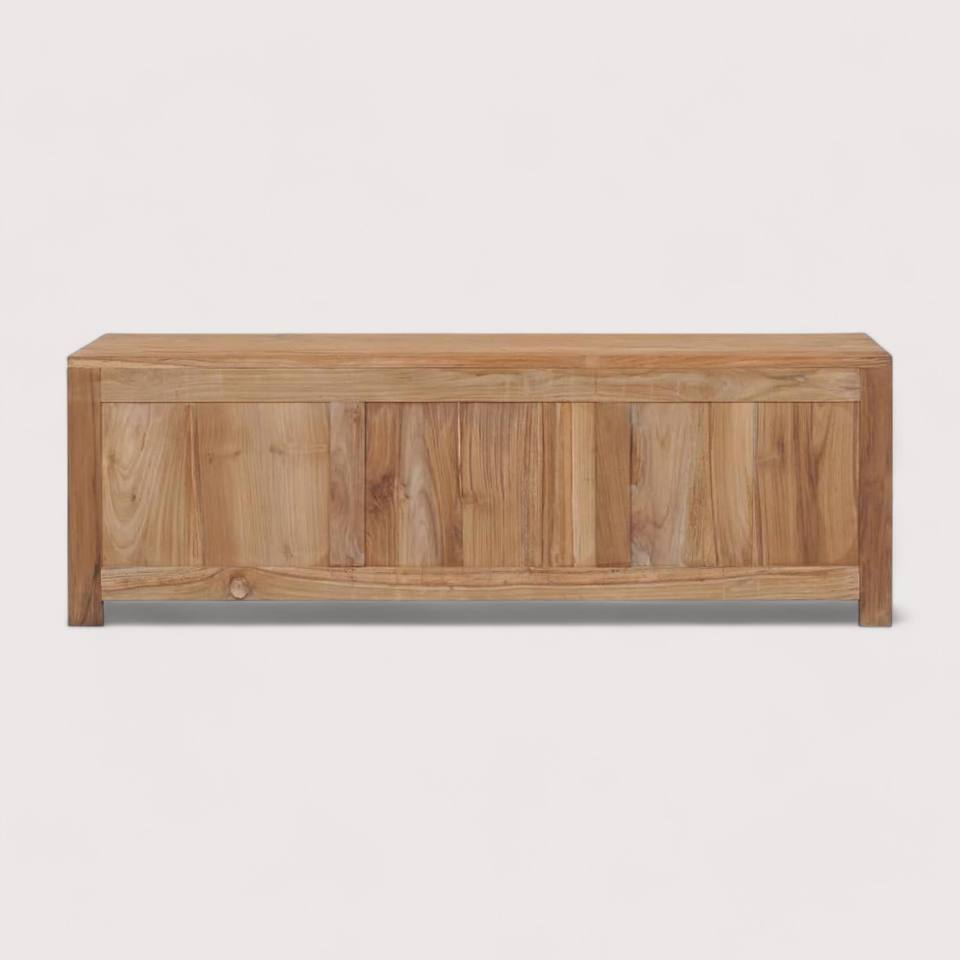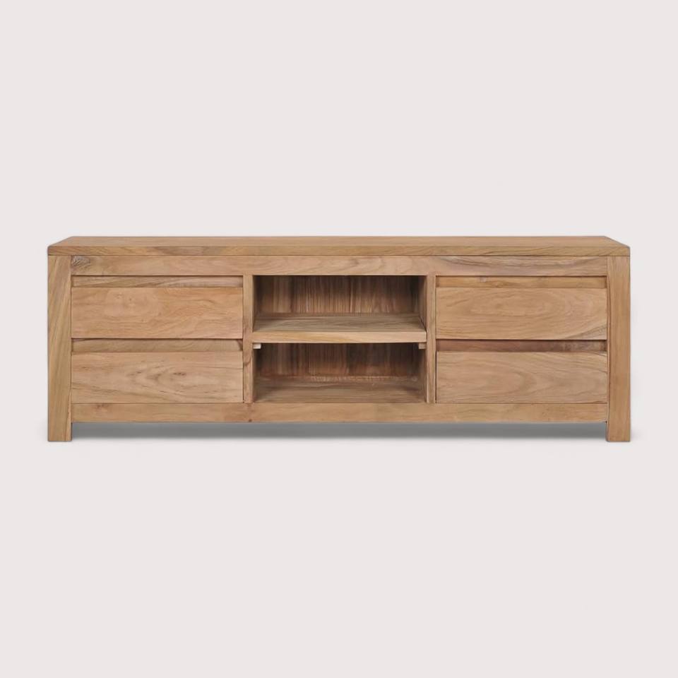 Contemporary Solid Teak Wood TV Cabinet Natural Untreated Wooden TV Stands for Bedroom Living Room Space-Saving Storage Shelves