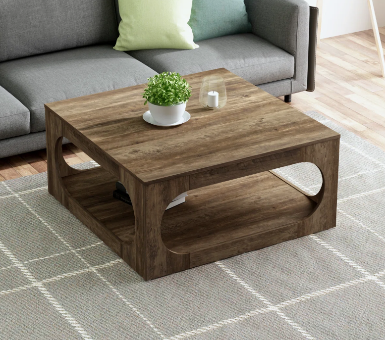 Contemporary Square shaped Solid Wood Coffee Table Multi-Functional Accent & Side Table for Living Room, Home Furniture