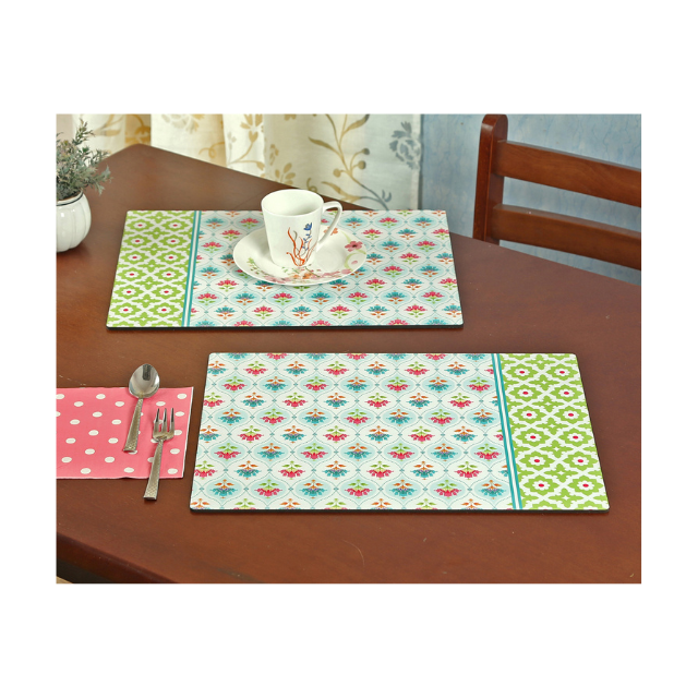 Contemporary Stripe Cotton Yeloow Butta Table Mats 13x18 Inches Basket Weave 210 GSM GOTS Certified Embroidered OEM ODM India