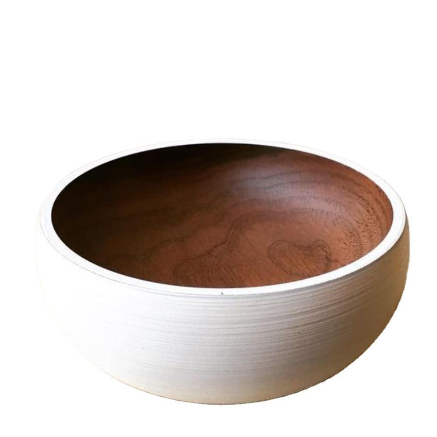 Contemporary Style Wooden Serving Bowl White Coated Real Acacia Large Handmade Dish Bowl Unique Bowls For Dinner Tableware