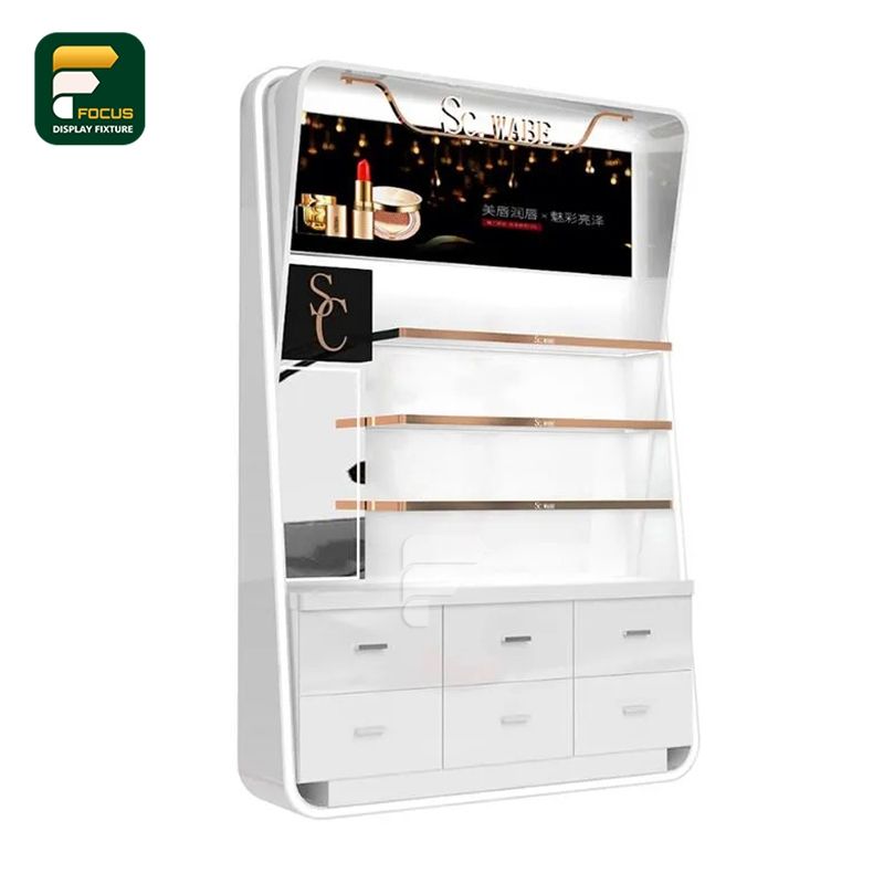 Contemporary White Display Shelf Spacious Shelves Beauty and Cosmetics Product Organizer