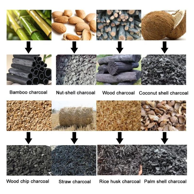 Raw material:wood coconut shell palm shell Biomass Wastes etc,.