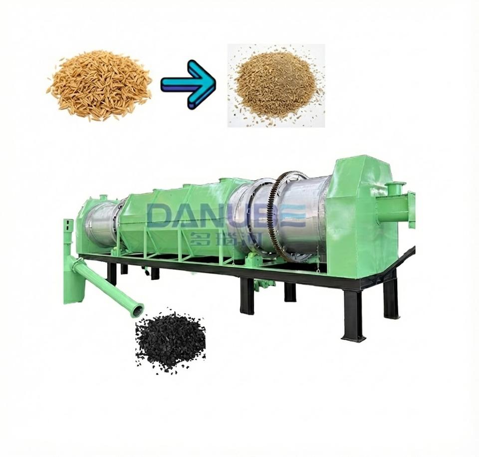 Continuous Carbon Rotary Kiln Motor Coconut Shell Charcoal Production Final Product Rice Husk Carbonization Stove