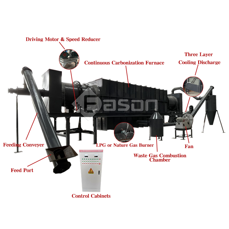 Product name:Pine Cone Olive Shell Continuous Charcoal Production Line