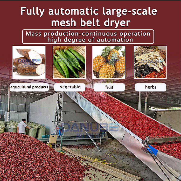 Continuous Type Automatic Working Factory Sell Food Dryer Machine Herb Dryer Machine Fruit Vegetable Mesh Belt Dryer