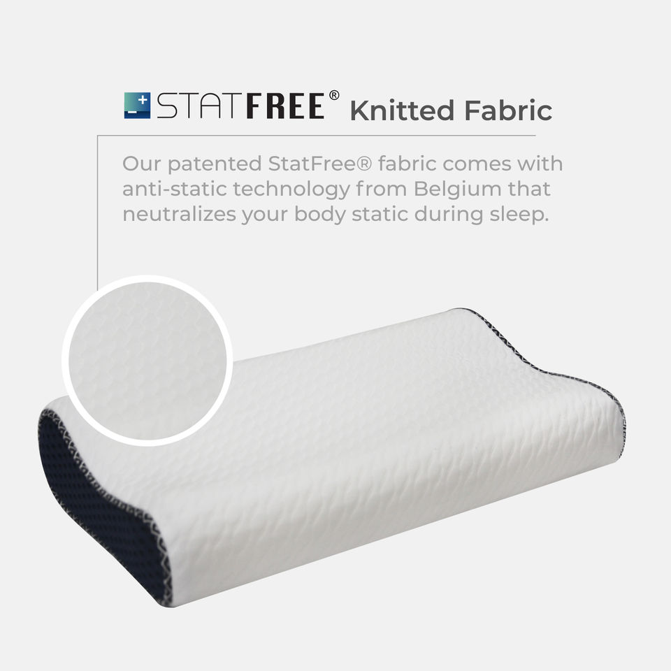 Advantages:Contour pillow adapts to neck with Statfree static control