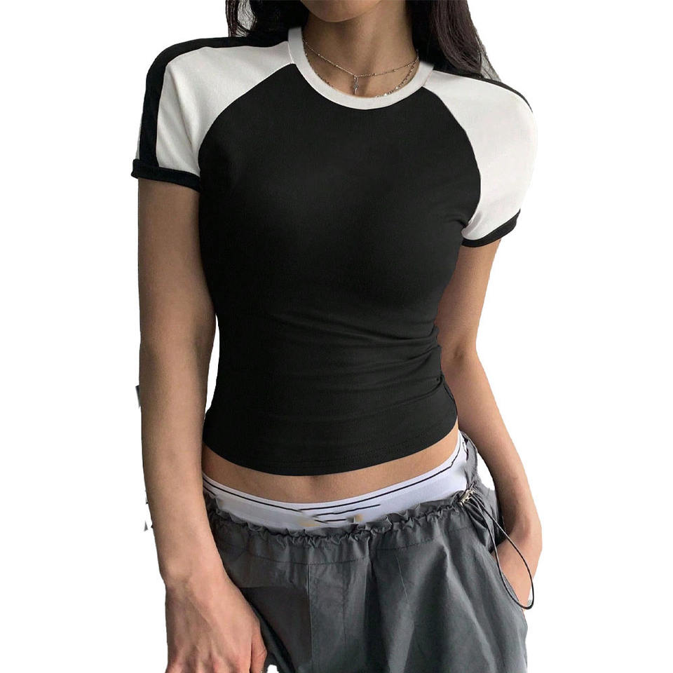 Contrast Raglan Sleeve Fitted Crop Tee Women Slim Stretch 100% Cotton Casual Streetwear Tank Top Custom Logo women's shirt