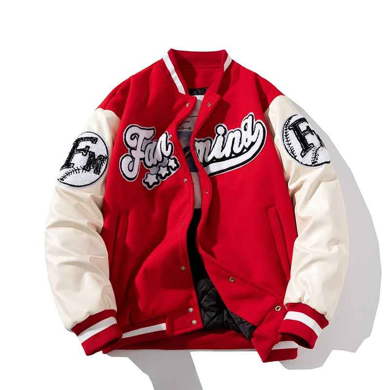 Contrast Sleeve College Baseball Jacket for Men Varsity Letterman Bomber Custom Embroidered Winter Outerwear