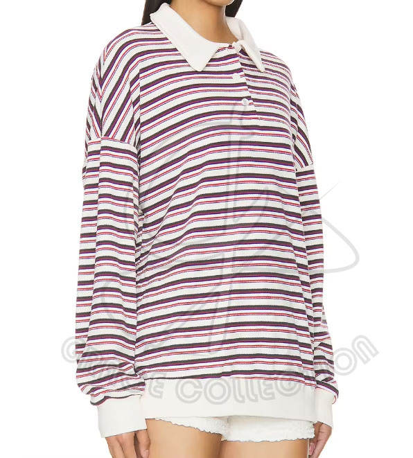 Contrast Stripes Polo Shirts 100% Cotton Fabric Long Sleeves Cropped Women Rugby Polo Shirts With Private Label's