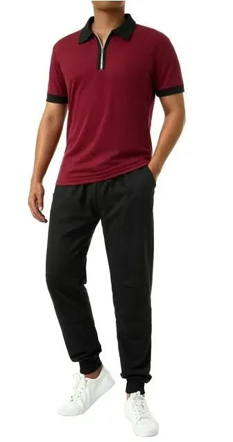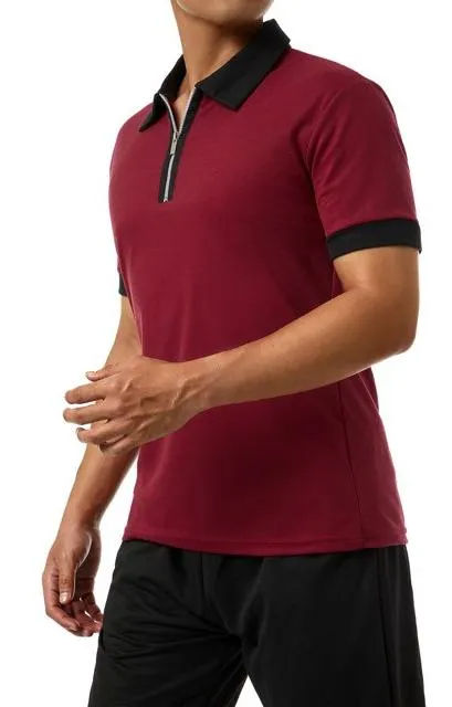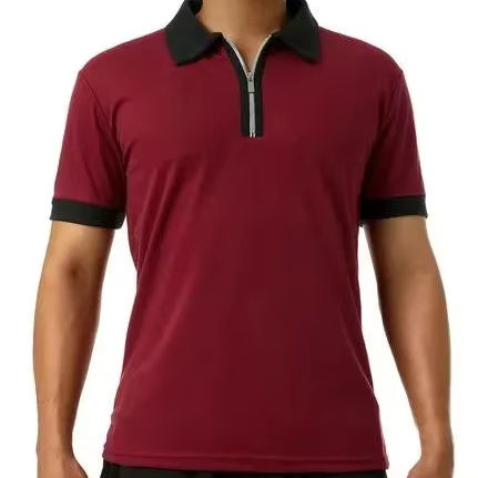 Contrast Color Wine Red Outdoor Sports Tactical Pure Color Polyester Short Sleeve Polo Shirt