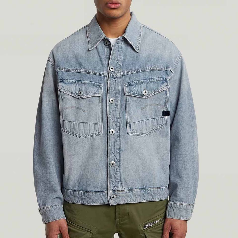 Contrasting colors jacket for men button up denim jacket casual streetwear custom slim fit long sleeve vintage washed trucker