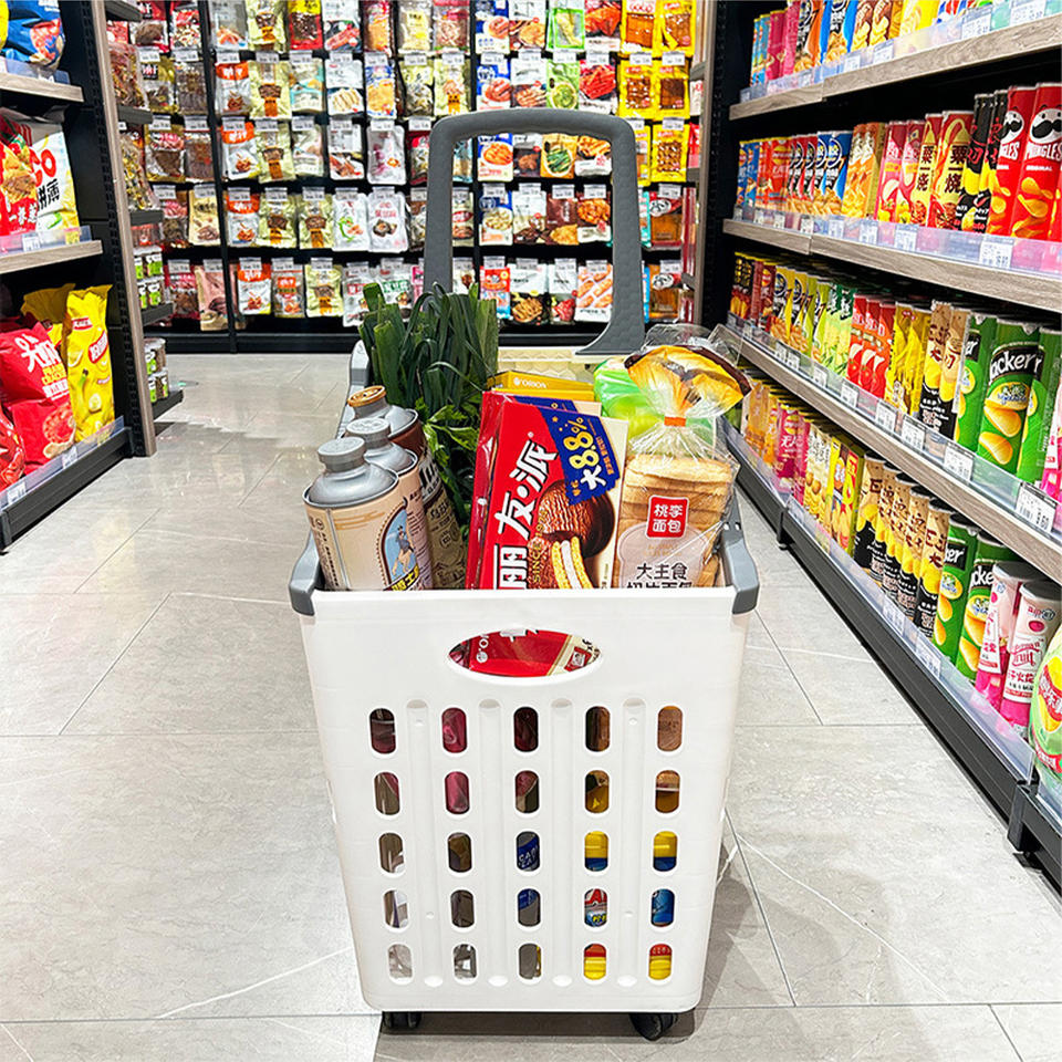 Convenient Portable Folding White Collapsible Rolling Trolley Swivel Wheels Shopping Cart for Grocery Laundry Home Use