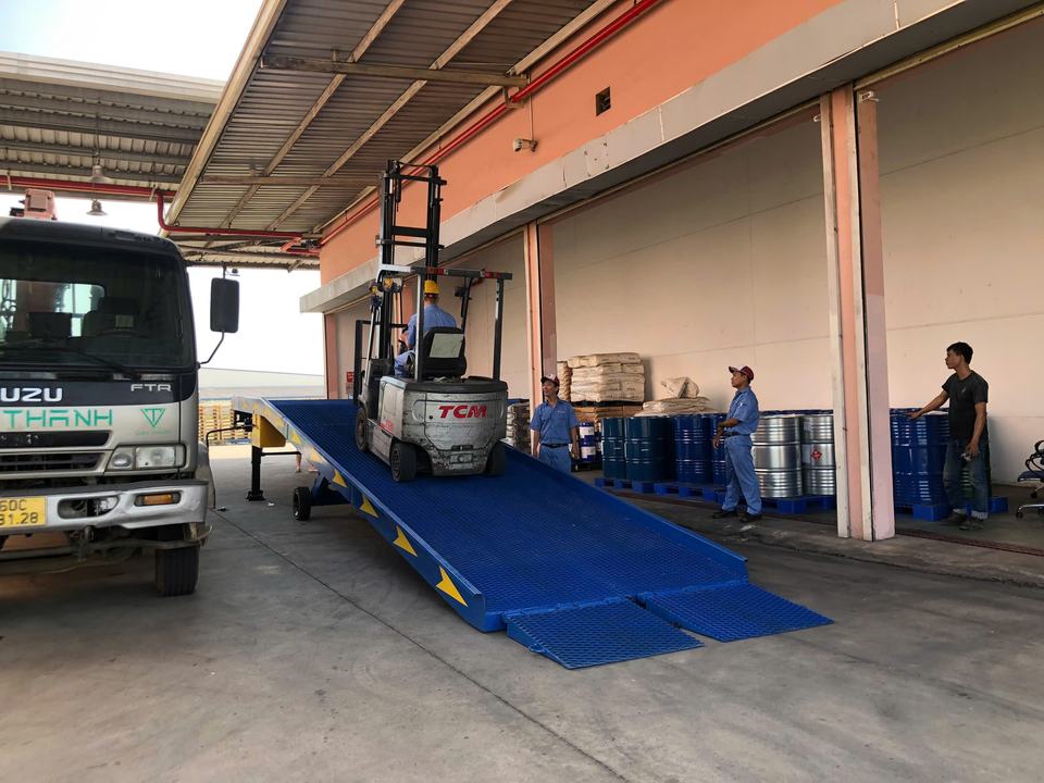Convenient With 10 Tons Dock Ramp Hydraulic Type With Ribbed Steel Anti Slip Deck Motor And Manual Pump warranty 1 year Vietnam