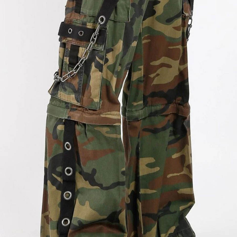 Convertible Men's Gothic Camouflage Style Jungle Theme Punk Fashion Cotton Pants Shorts 2026