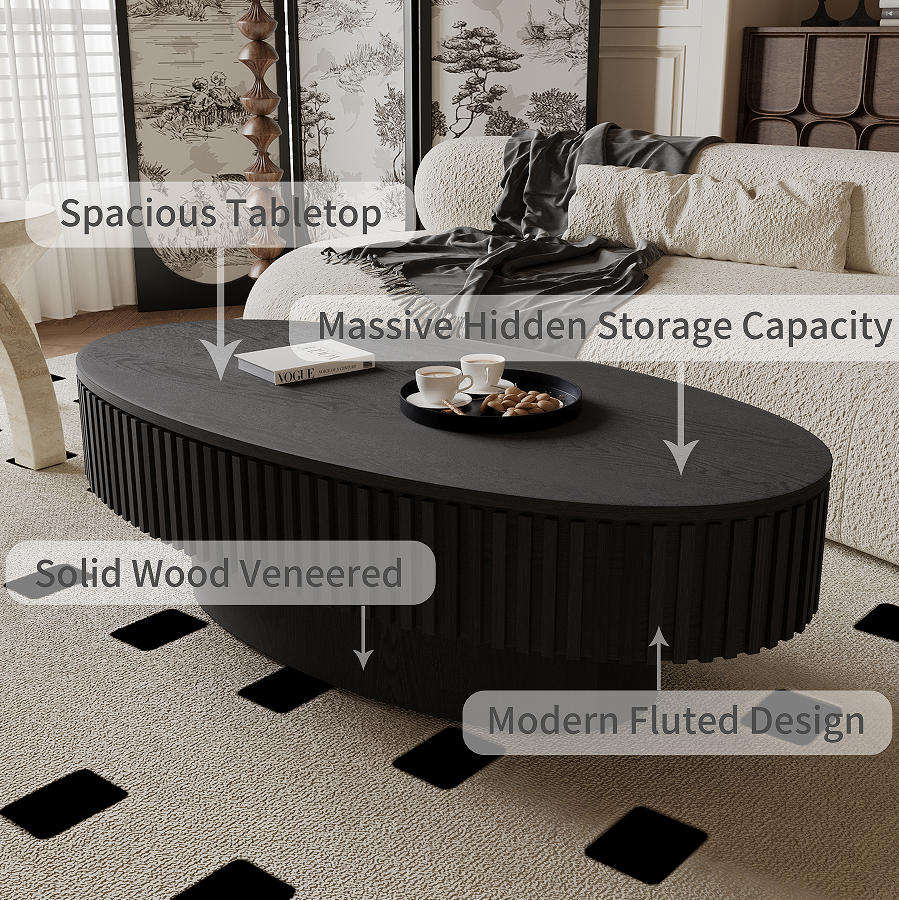 Convertible Oval Coffee Table with Storage Solid Wood Veneered Modern Design for Living Room & Bedroom
