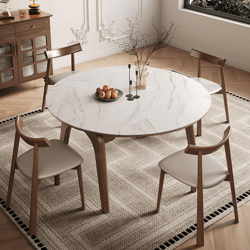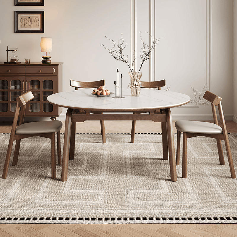 Convertible Solid Wood Round Dining Table Modern Minimalist Design For Dining Room