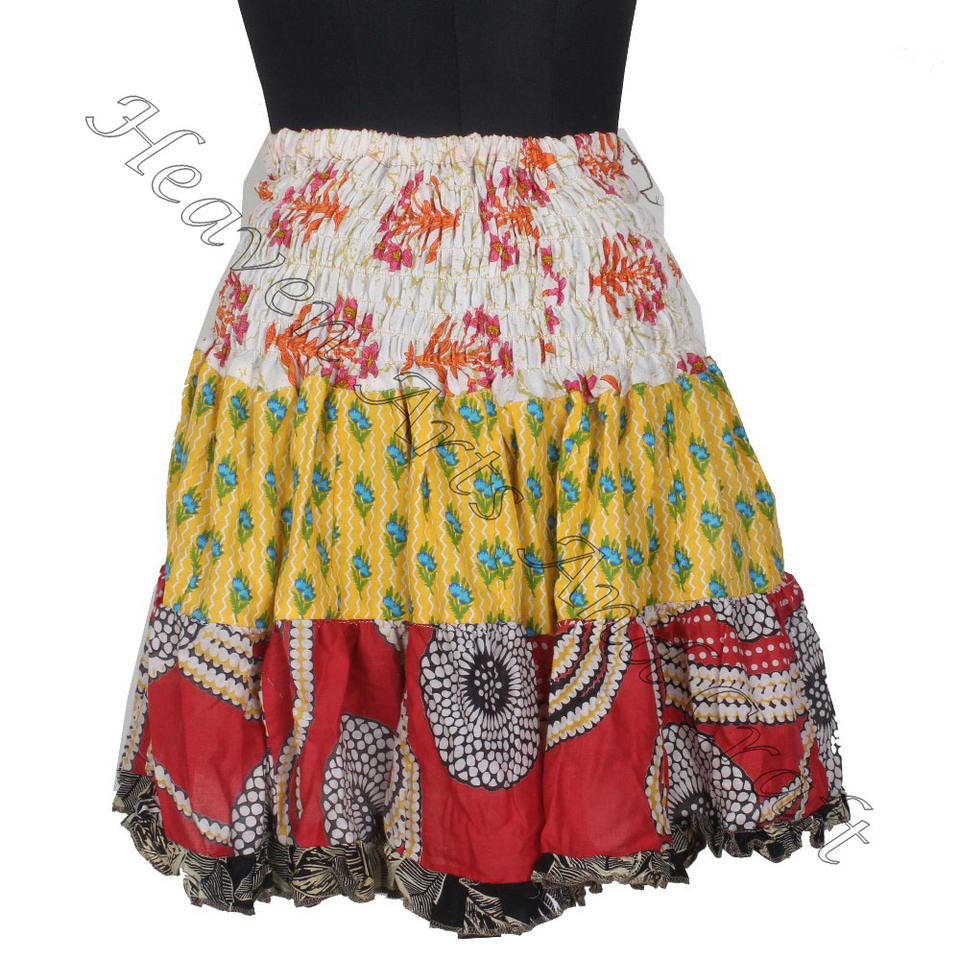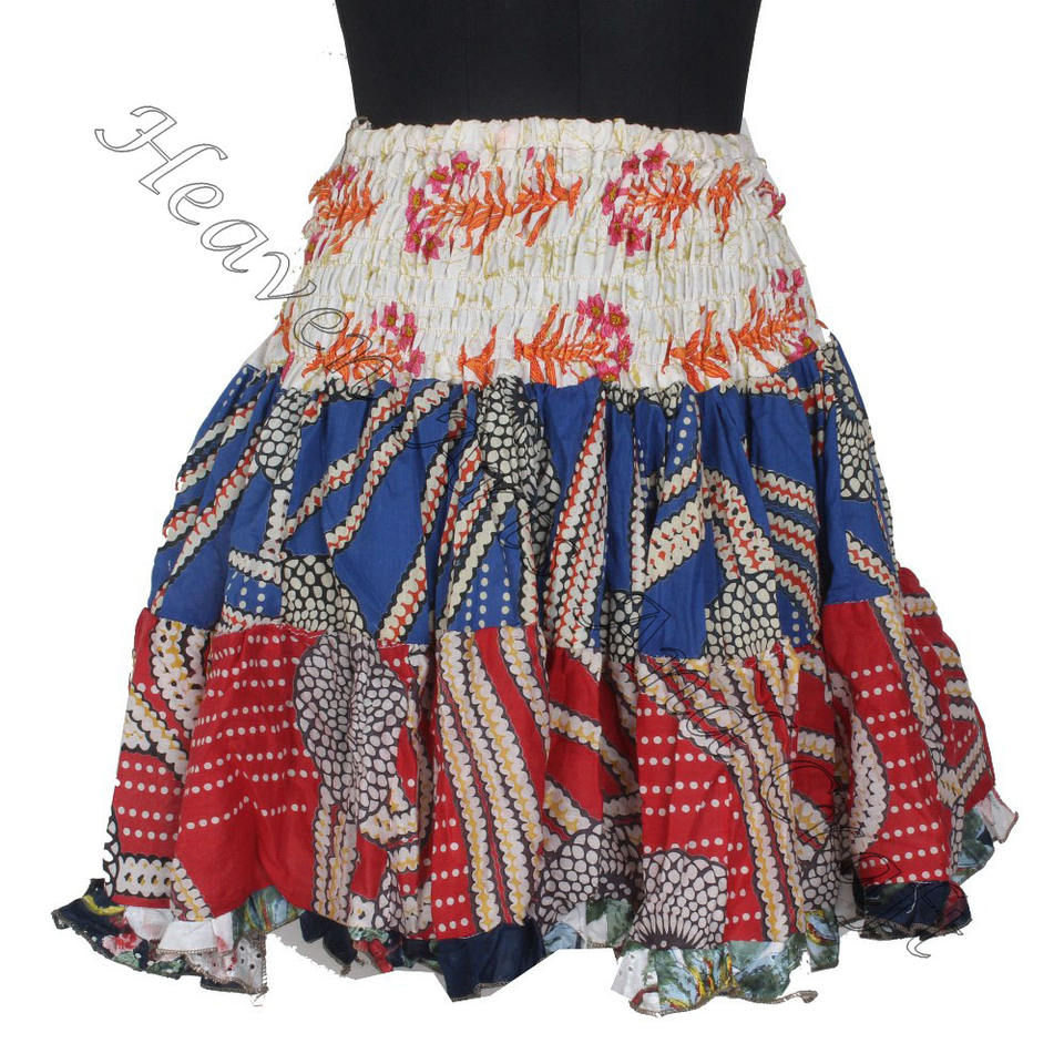 Keywords:Vintage Cotton Sari Patches Mini Skirt