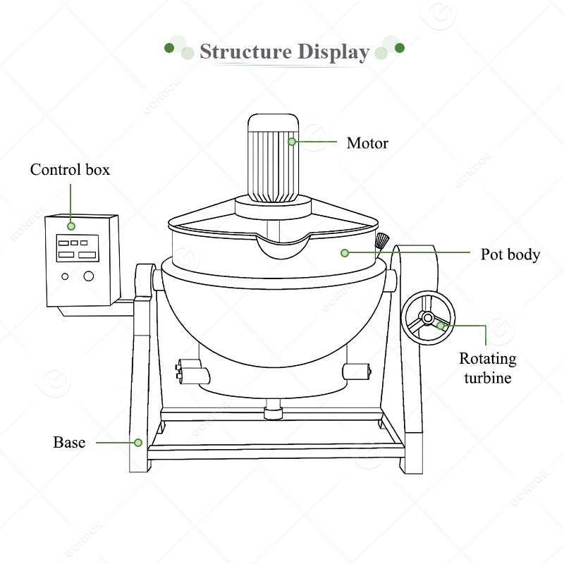 Cook Pot 200l 500l Stainless Steel Water Electric Heat Agitator Tilting Steam Vertical Oil Jacket Kettle