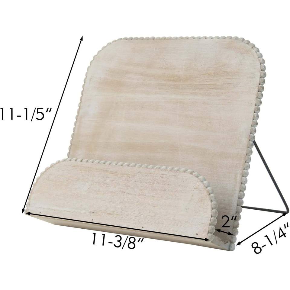 Cookbook Stand with Beads Edge, Farmhouse Book Holder, Cookbook Stand for Kitchen Counter, Distressed White