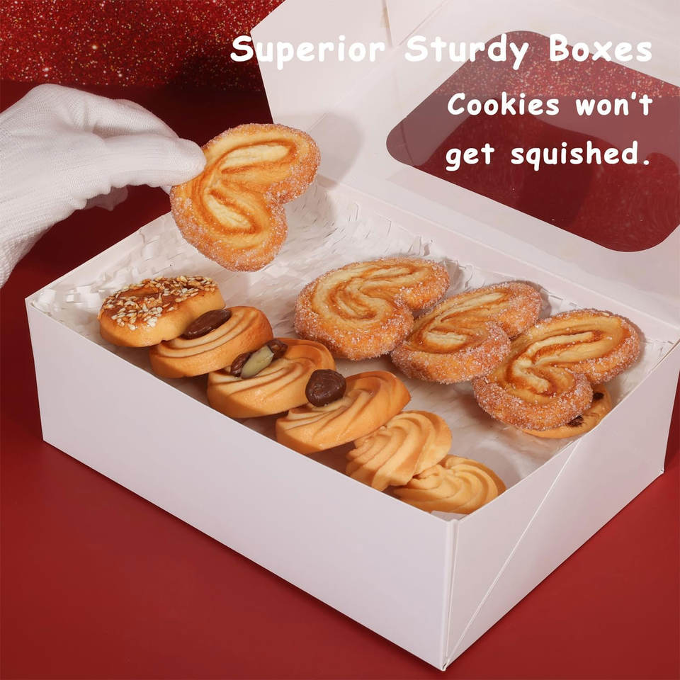 Cookie Boxes with Window 8.25x6x2.75in White Treat Boxes with Clear Display Window and Gold Foil Star Design Bakery Cake