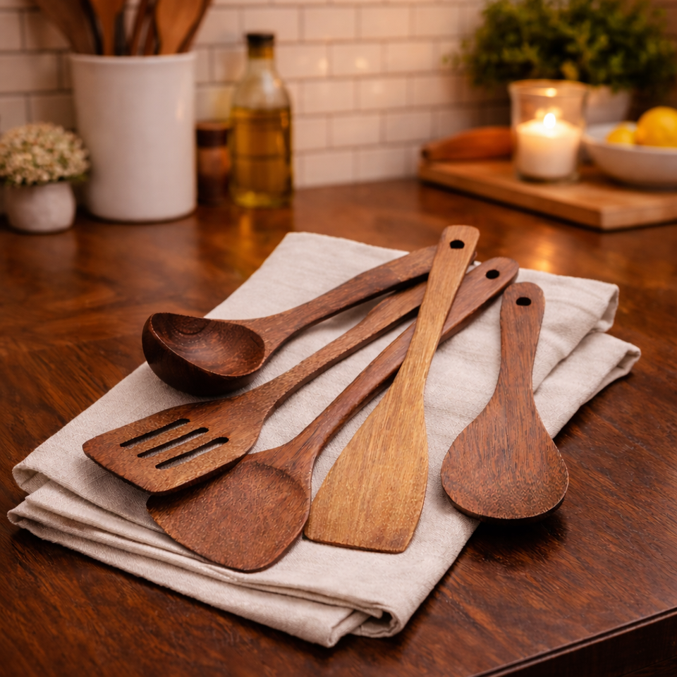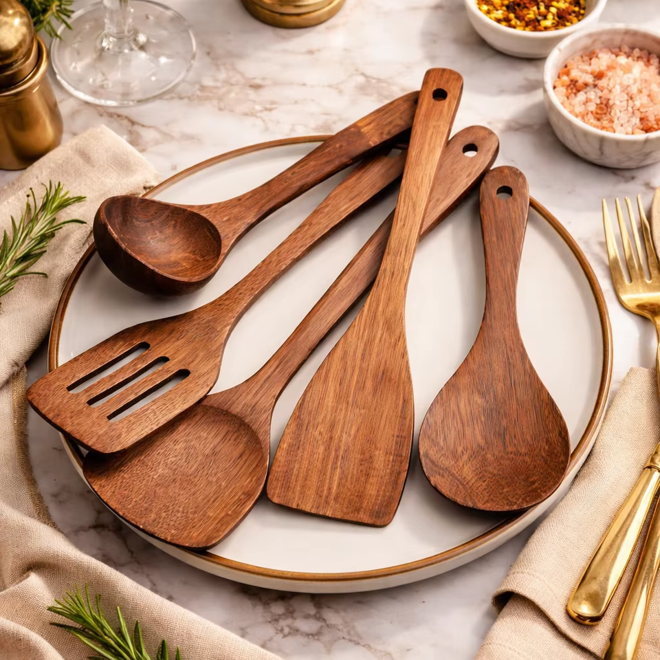 Cooking Spoon Set | Eco-Friendly Wooden Kitchen Utensils | Heat Resistant Wood Spoon Spatula Set | Wholesale & Custom Logo