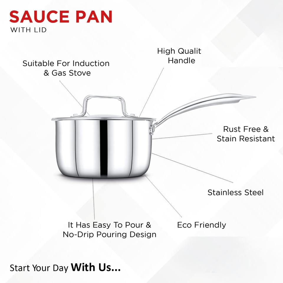 Cookware Stainless Steel Riveted Handle Sauce Pan with Lid Durable Design Food Grade Easy Clean Exotic Silver Shining