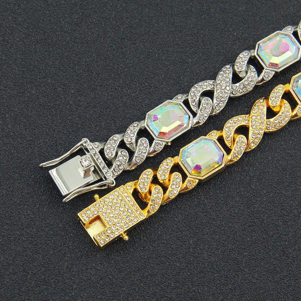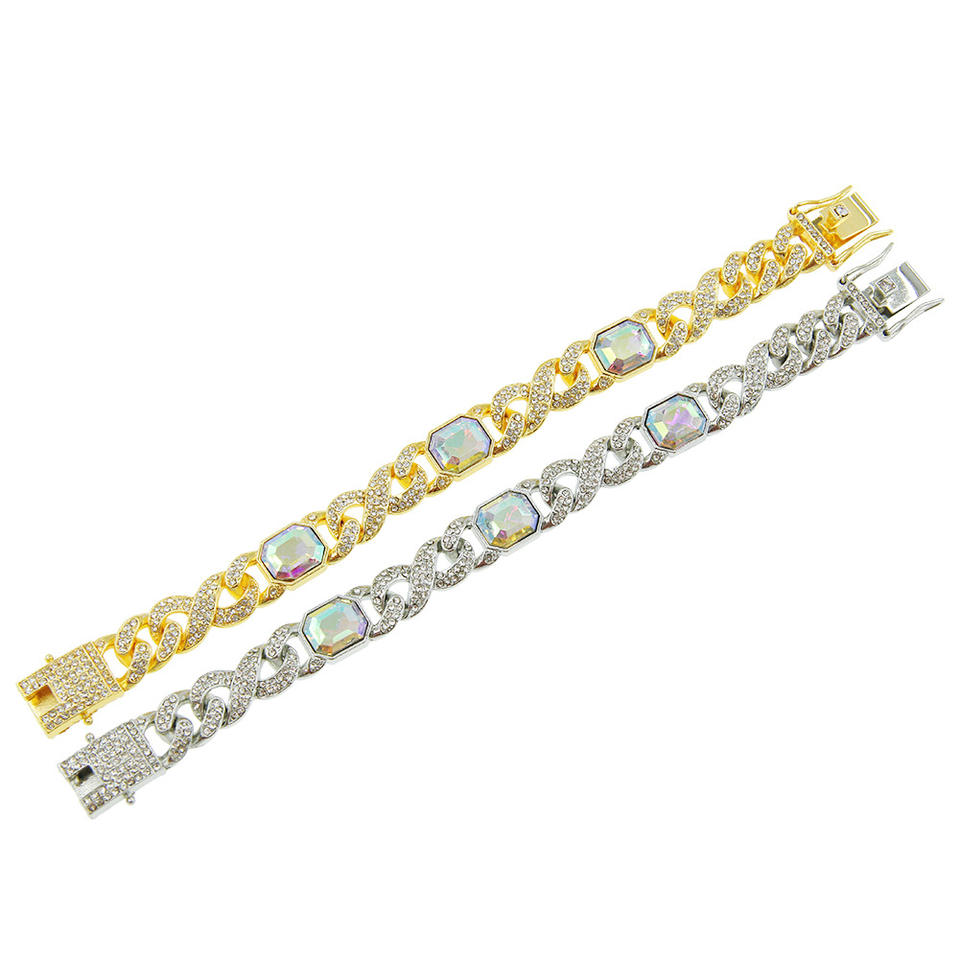 Cool 8-clasp rectangular colored personalized splicing bracelet Men's hipster Cuban chain bracelet