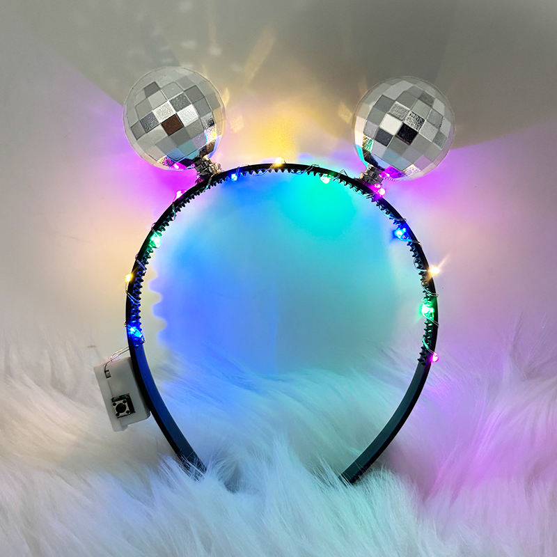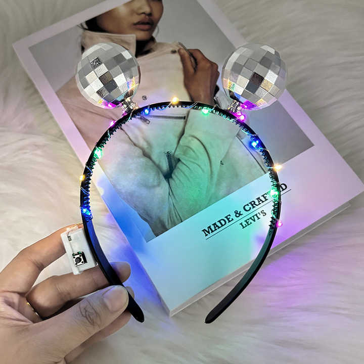 Cool Cyberpunk Disco Ball Headband Glowing Luminous Hair Hoop for Night Club Music Festival Party Decorations
