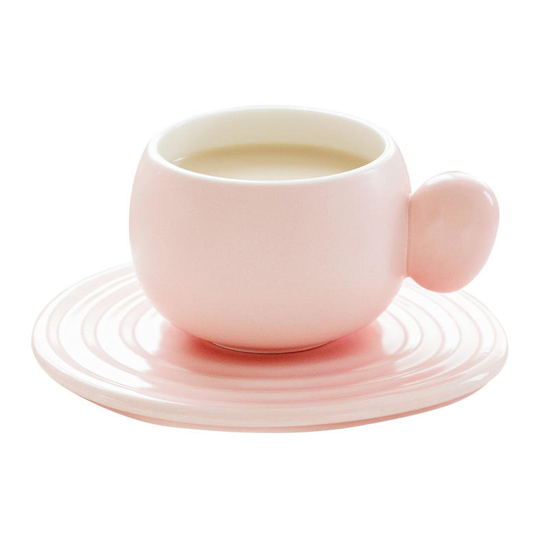 Select nowcolor: Matte pink milk ring coffee cup and saucer