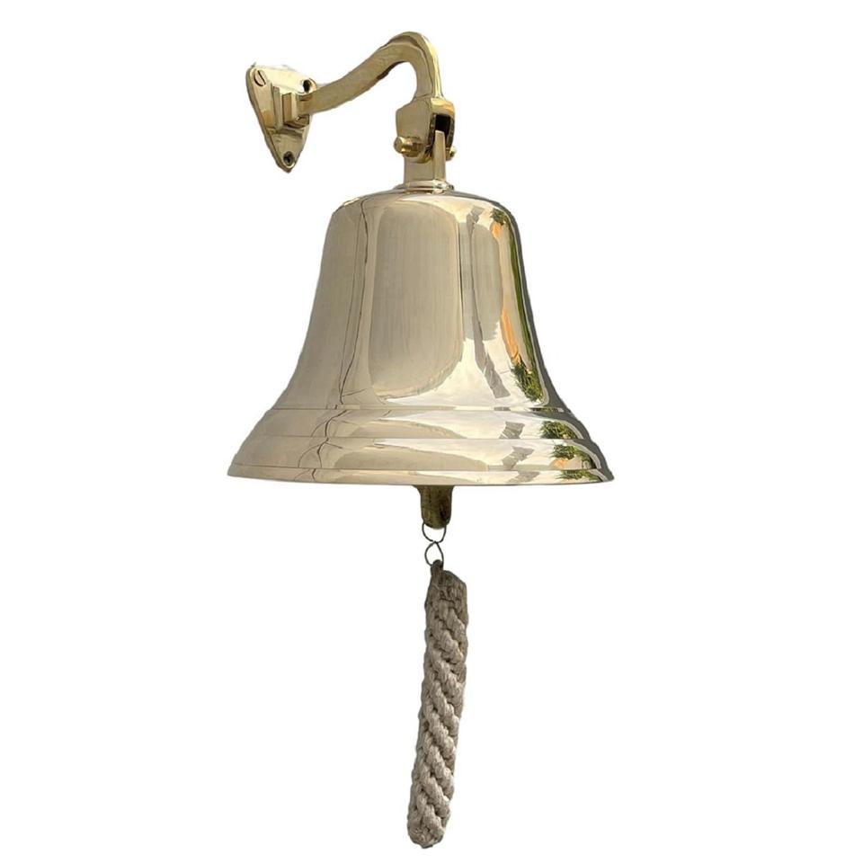 Copper Antique Finished Brass Material Hand Bell Round Nautical Ship Bell With Handle Style Model For Time Reminder