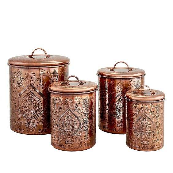 Copper Antique Finishing Hammered Design Metal Storage Container with Lids High Quality Kitchenware Food Safe Grocery Container