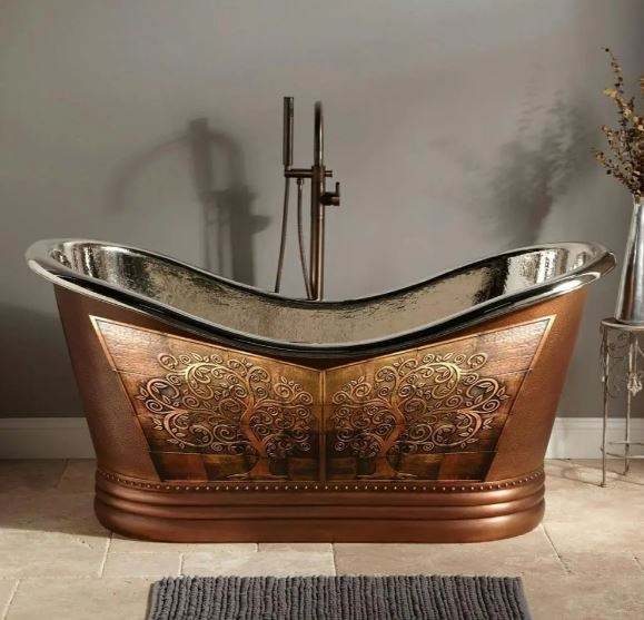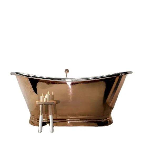 Copper Bath Tub Shined Copper Affordable Luxury Villa Hot Selling original Copper Double Sipper Traditional Roll Free Standing