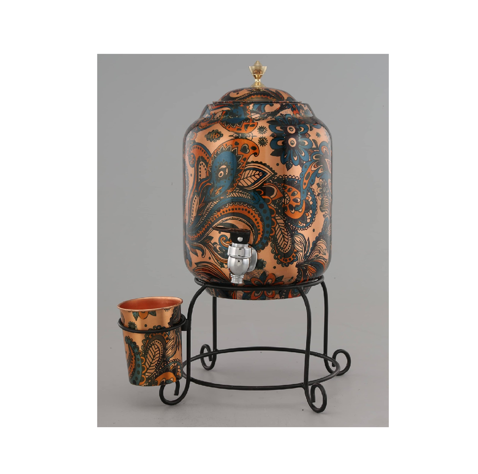 Copper Drinkware Set of Copper Water pot and printed With Lid and 2 glass with wedding and home party ware water cooler