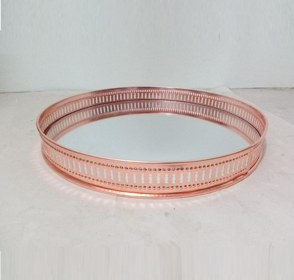 Copper-Finished Modern Design Round Serving Tray Exquisite Metal Handicraft for Luxurious Food Classic Tabletop Decoration