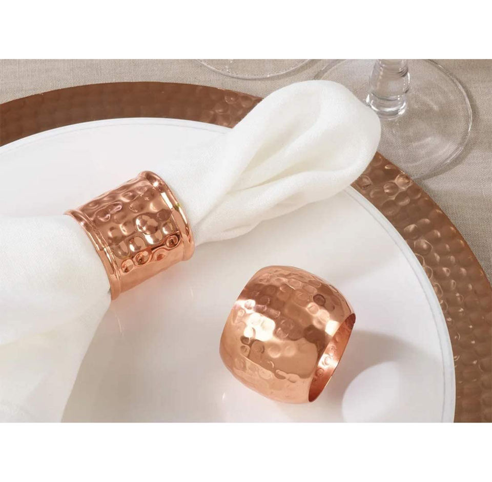 Copper Hammered Metal Napkin Ring Table Decor Napkin Holder for Weddings Parties New Year Formal Dinner Events